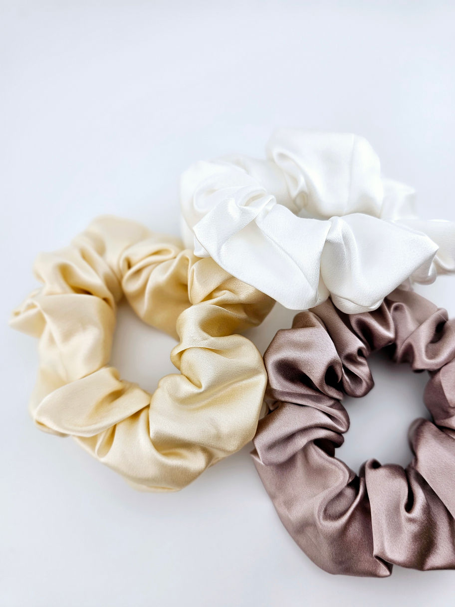 Discover the ultimate must-have scrunchie set that will instantly elevate your hairstyle game! Featuring three medium-sized scrunchies elegant white, chic martini, and classy champagne colors, this set is a game-changer for your hair styling needs. Don't miss out on the opportunity to transform your look effortlessly!
